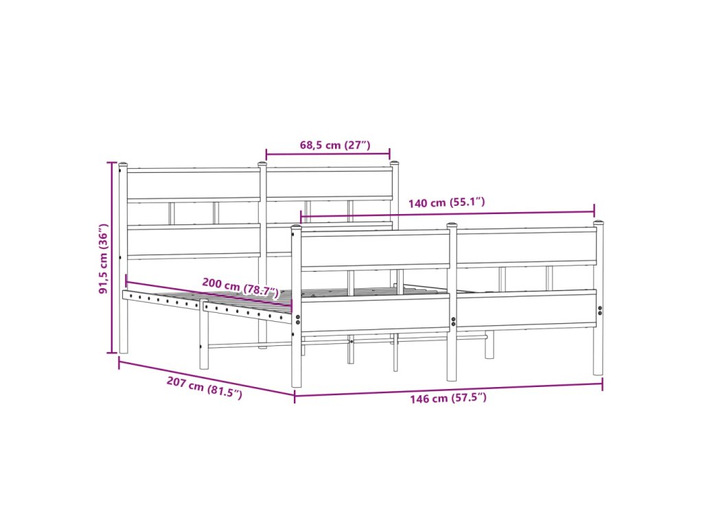 - Vhodné rozměry matrace: 140 x 200 cm (Š x D) (matrace není součástí balení)