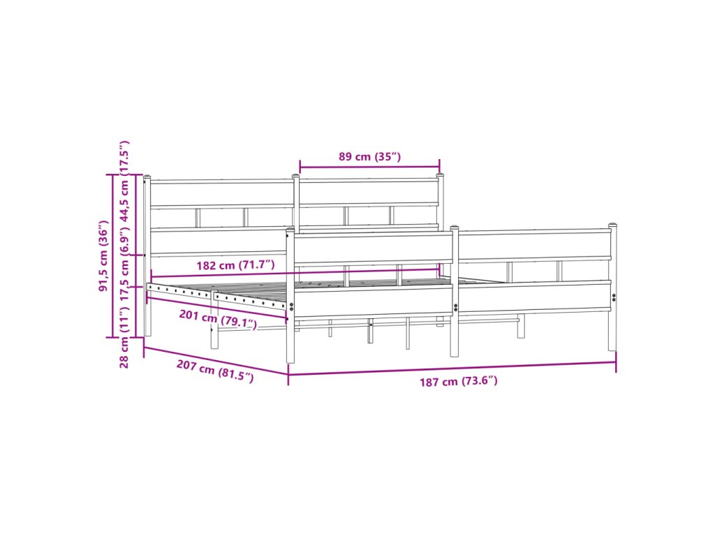 - Kovové lamely a nohy: Kovový rám postele je doplněn kovovými rošty a středovými nohami, které poskytují matraci tolik potřebnou oporu a prodyšnost.