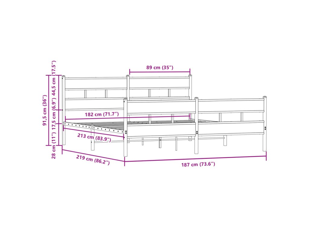- Vhodné rozměry matrace: 183 x 213 cm (Š x D) (matrace není součástí balení)