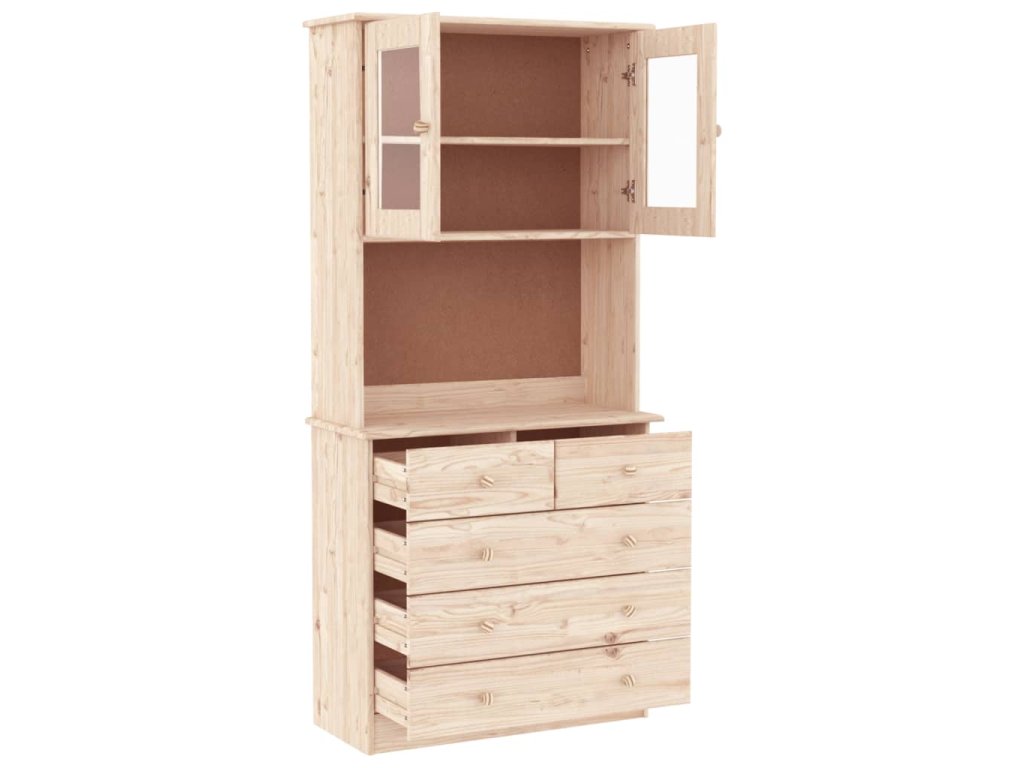 - Bez povrchové úpravy: Jelikož je příborník vyroben z masivního borového dřeva bez povrchové úpravy, můžete zachovat jeho přirozenou barvu, ale také ho podle libosti natřít nebo nalakovat.