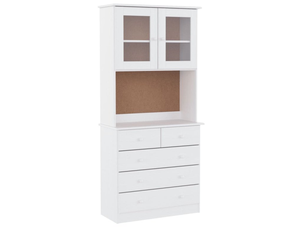 - Dostatek úložného prostoru: Highboard s policemi, zásuvkami a skleněnými dvířky nabízí spoustu úložných prostor a možností vystavení vašich oblíbených předmětů.