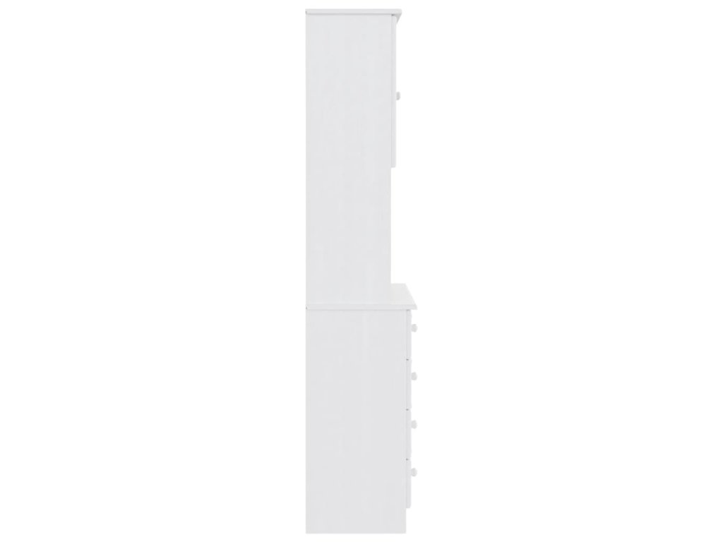 - Masivní borové dřevo: Masivní borové dřevo je krásný přírodní materiál. Borové dřevo má rovnou kresbu a obsahuje suky, které materiálu dodávají jeho charakteristický, rustikální vzhled. Skříň je vyrobena z masivního borového dřeva, je tedy odolná a robustní.