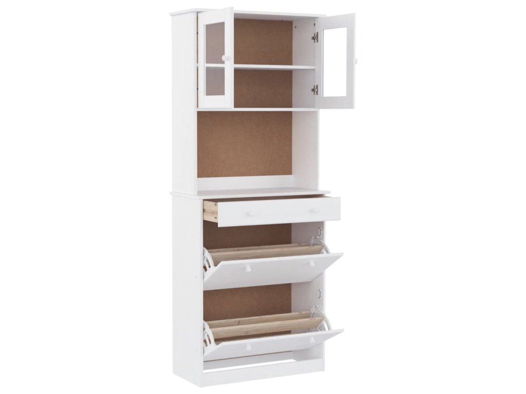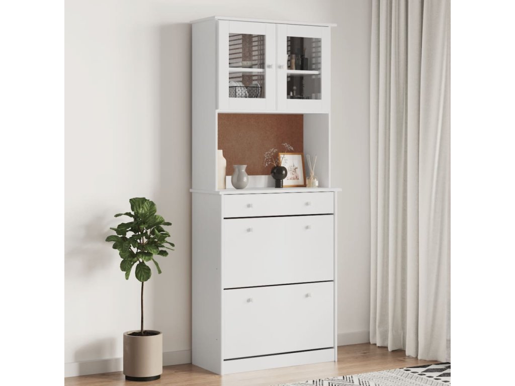 - Dostatek úložného prostoru: Vysoká skříň s policemi, zásuvkou a prosklenými dvířky nabízí spoustu úložného prostoru a nespočet možností vystavení vašich oblíbených předmětů.