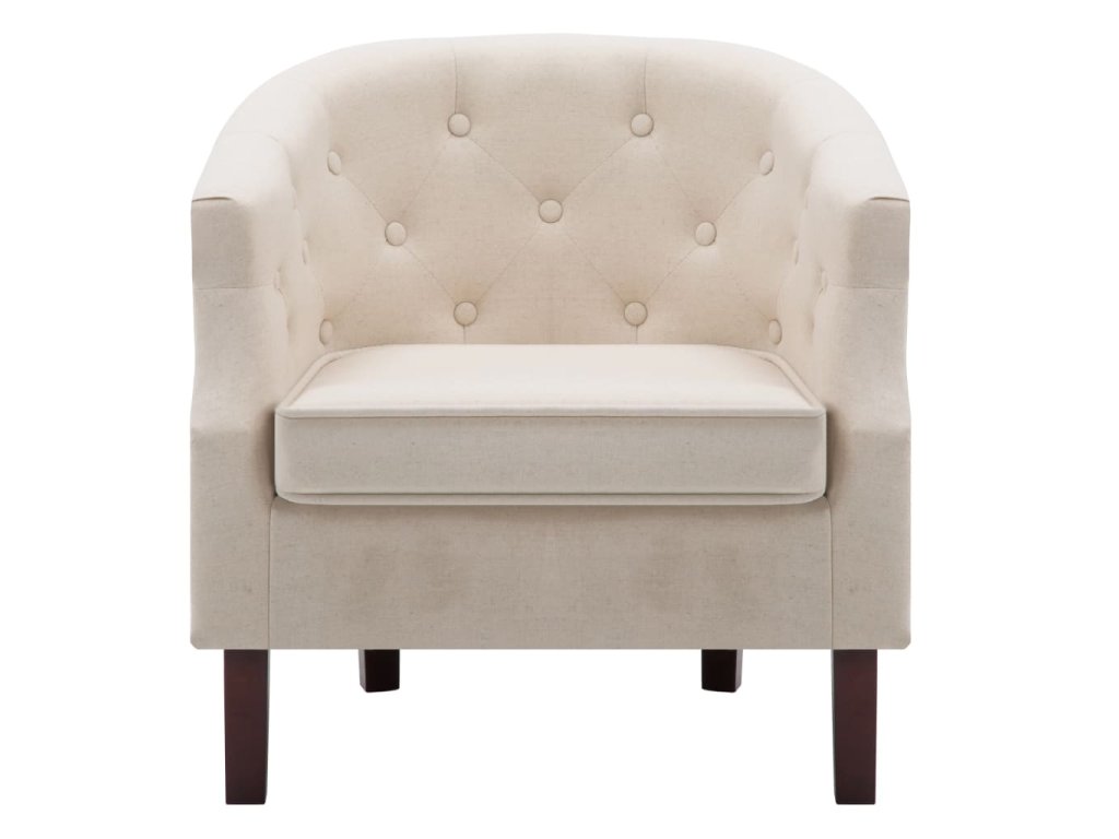 Toto křeslo dodá vašemu interiéru dotek luxusu, úrovně a stylu. Díky pevným dřevěným nohám je toto sofa křeslo stabilní a odolné. Je čalouněné vysoce kvalitní polyesterovou tkaninou a polstrované silným molitanem, takže vám umožní užívat si při sezení optimálního pohodlí. Všívané knoflíčky a ladně zaoblené područky dodávají křeslu sofistikovaný vzhled. Je ideálním místem ke sledování filmů, čtení knihy nebo jen tak k odpočinku!