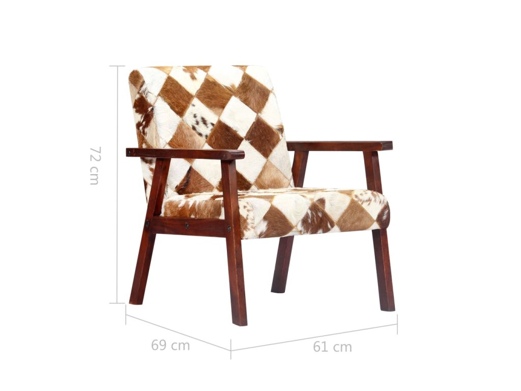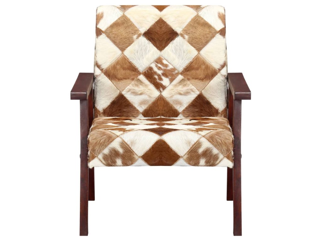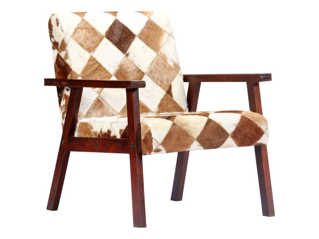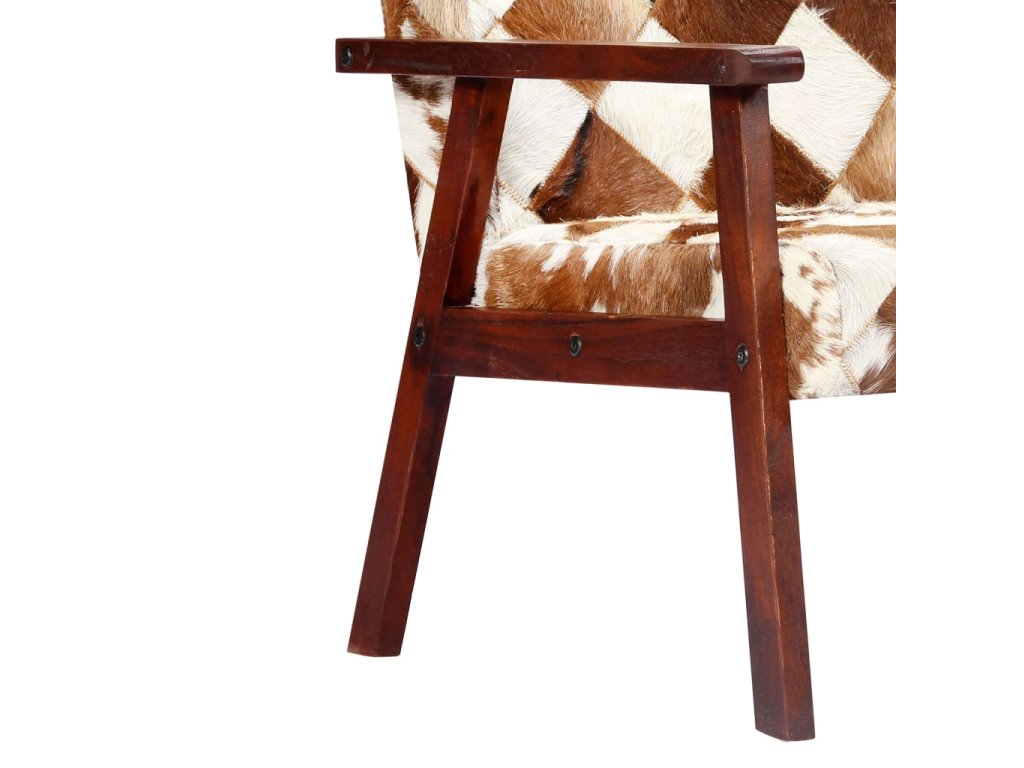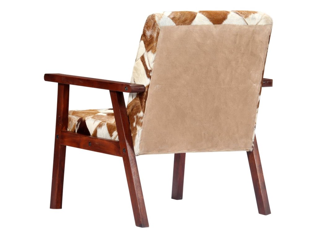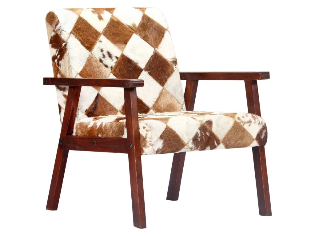 Křeslo je vyrobeno z kvalitní pravé kozí kůže se srstí a povrchovou úpravou medovým pigmentem, a tak vašemu interiéru nejen dodá na luxusu, ale také vám poskytne značné pohodlí. Navíc má vysoce stabilní a odolný rám z masivního akáciového dřeva. Také područky a silně polstrované čalounění křesla přispívají k příjemnému posezení. Sestavení křesla je snadné.