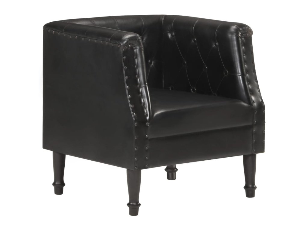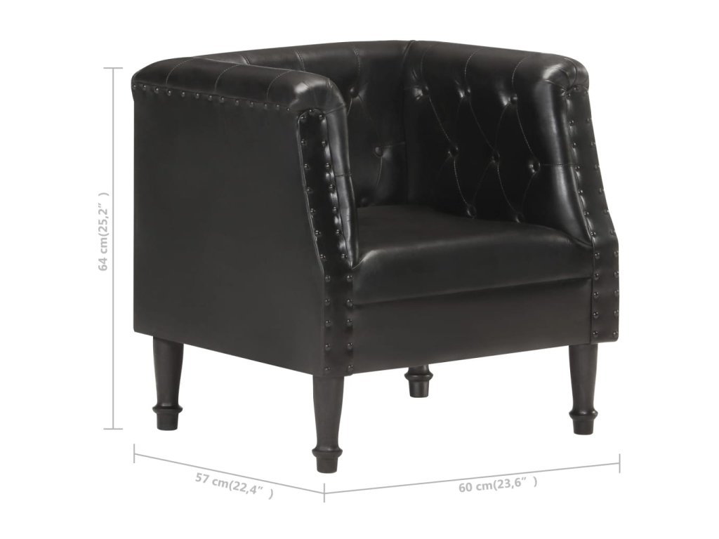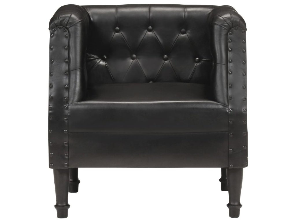 Klubové křeslo je čalouněné pravou kozí kůží, která je měkká, odolná a vyzařuje vintage šarm. Rám je zhotovený z masivního mangovníkového dřeva a přispívá k celkovém retro stylu křesla. Čalounění s cvočky je designový prvek v industriálním duchu. Zaoblené područky a silně polstrovaný sedák a opěradlo koženého křesla vám poskytnou perfektní útočiště, kdykoli si chcete pohovět a relaxovat při sledování televize nebo při poslechu hudby.