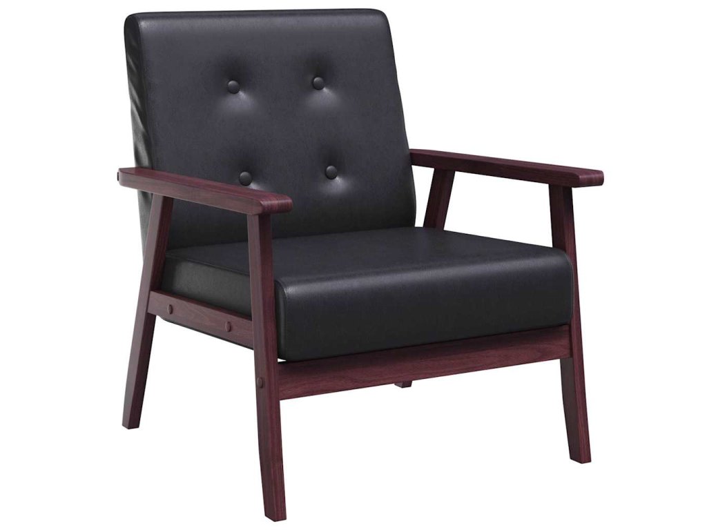 Toto retro křeslo bude skvělým a dekorativním doplňkem vašeho obývacího pokoje. Má robustní dřevěný rám, čalounění je z měkké, příjemné umělé kůže a polstrování z tlusté pěny pro zvýšené pohodlí.