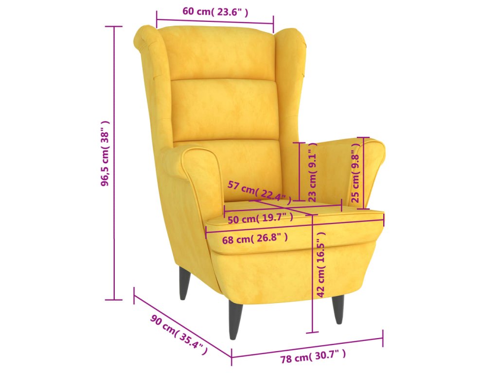 Křeslo je čalouněné sametem, je tedy velmi hebké na dotek a má dlouhou životnost. Stabilitu zajišťuje rám z překližky. Polstrované opěradlo a sedák vám zajistí pohodlné posezení.