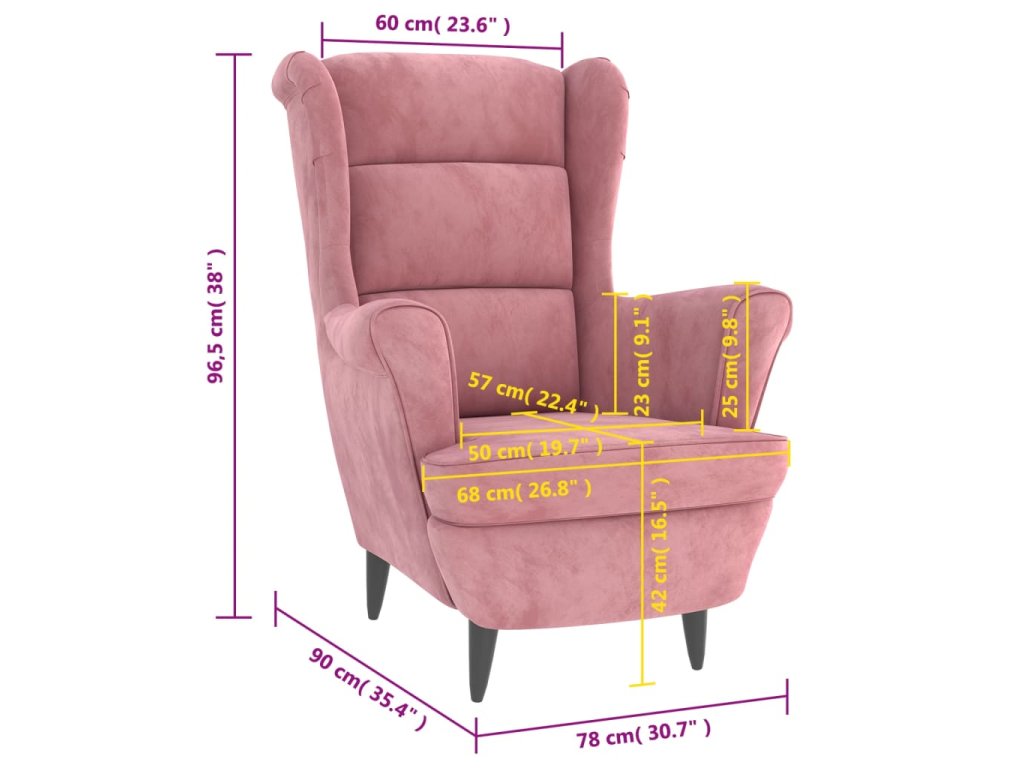 Křeslo je čalouněné sametem, je tedy velmi hebké na dotek a má dlouhou životnost. Stabilitu zajišťuje rám z překližky. Polstrované opěradlo a sedák vám zajistí pohodlné posezení.