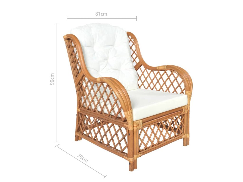 Tato sedačka je vyrobená z přírodního ratanu, je tedy odolná a snadno se čistí. Přiložené podušky poskytují maximální pohodlí, takže se můžete po náročném dni zcela uvolnit. Pohovka je ideální pro rodinné filmové večery, hraní videoher, čtení nebo sledování televize.