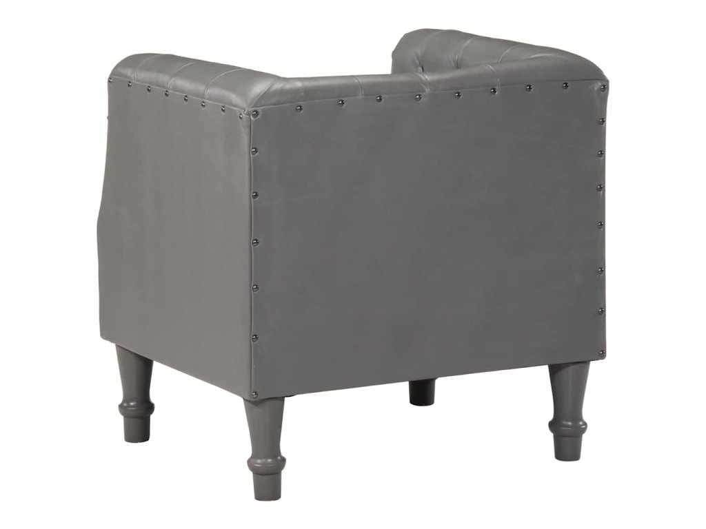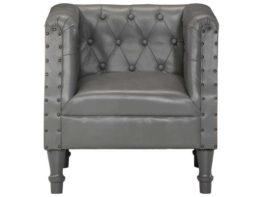 Klubové křeslo je čalouněné pravou kozí kůží, která je měkká, odolná a vyzařuje vintage šarm. Rám je zhotovený z masivního mangovníkového dřeva a přispívá k celkovém retro stylu křesla. Čalounění s cvočky je designový prvek v industriálním duchu. Zaoblené područky a silně polstrovaný sedák a opěradlo koženého křesla vám poskytnou perfektní útočiště, kdykoli si chcete pohovět a relaxovat při sledování televize nebo při poslechu hudby.