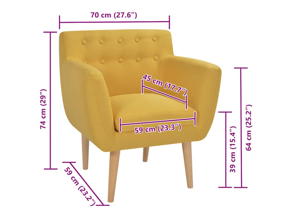 Křeslo má odolné textilní čalounění a vysoce kvalitní dřevěný rám, který přispívá k jeho robustnosti a trvanlivosti. Polstrovaný polštář sedáku jeho pohodlí ještě zvyšuje.