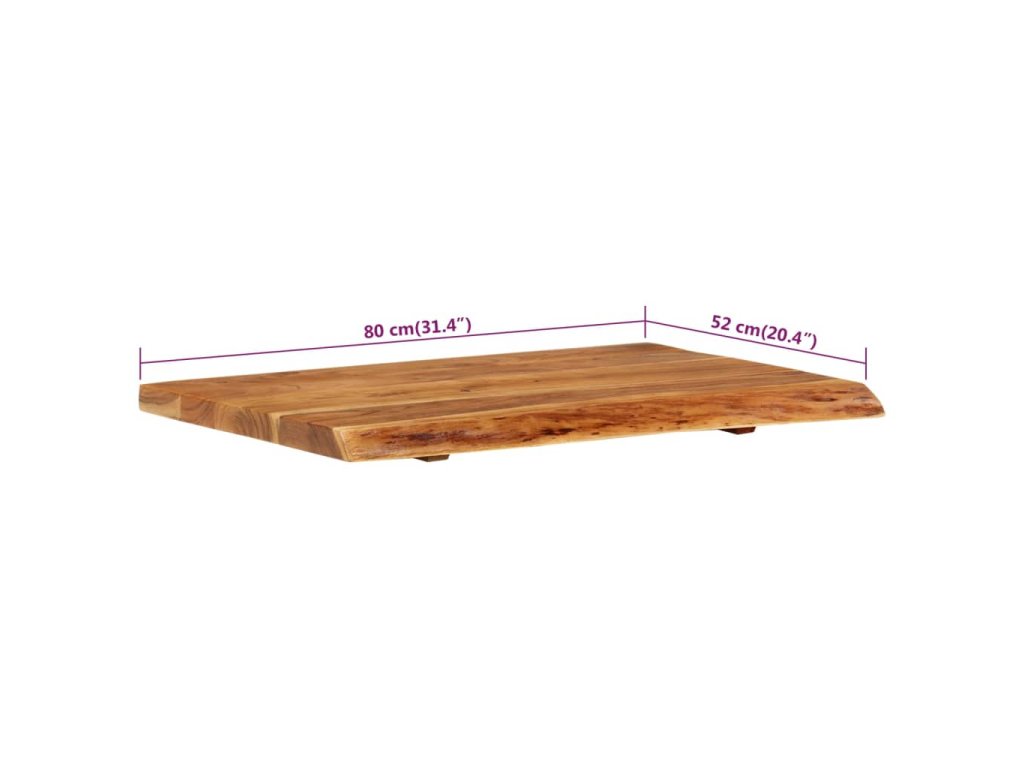Koupelnový pult je vyrobený z masivní akácie, což je tropické tvrdé dřevo, které je husté a odolné a má dlouhou životnost. Masivní akáciové dřevo bylo vyleštěné, natřené a nalakované, takže je dobře zapečetěné, a tudíž chráněné před vlhkostí. Deska je zhotovená z kmene stromu a kopíruje jeho přírodní hrany, takže do vašeho bydlení vnese krástu přírodního dřeva.
