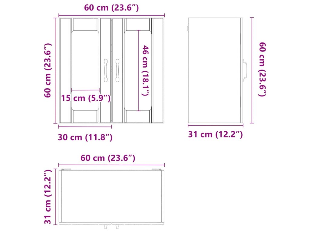 - Celkové rozměry: 60 x 31 x 60 cm (Š x H x V)