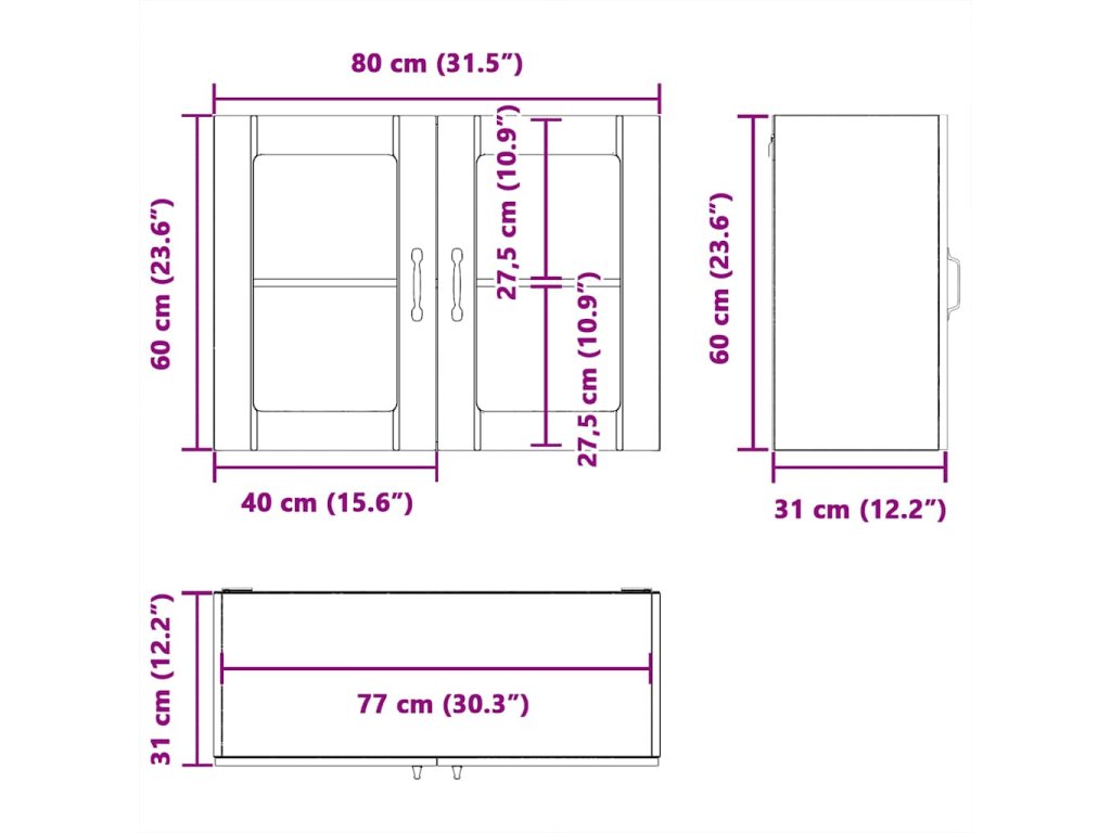 - Celkové rozměry: 80 x 31 x 60 cm (Š x H x V)