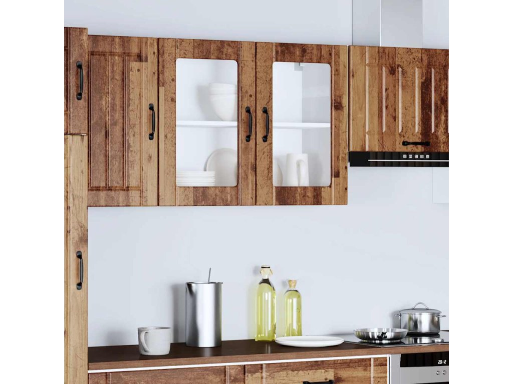 - Praktická dvířka: Prosklená dvířka pomáhají udržovat čistý a uspořádaný prostor tím, že za ně schováte kuchyňské spotřebiče a zároveň umožňují jasnou viditelnost.