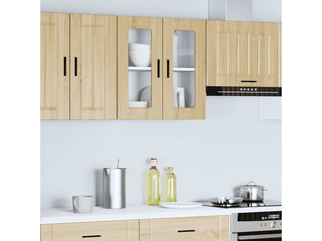 - Praktická dvířka: Prosklená dvířka pomáhají udržovat čistý a uspořádaný prostor tím, že za ně schováte kuchyňské spotřebiče a zároveň umožňují jasnou viditelnost.