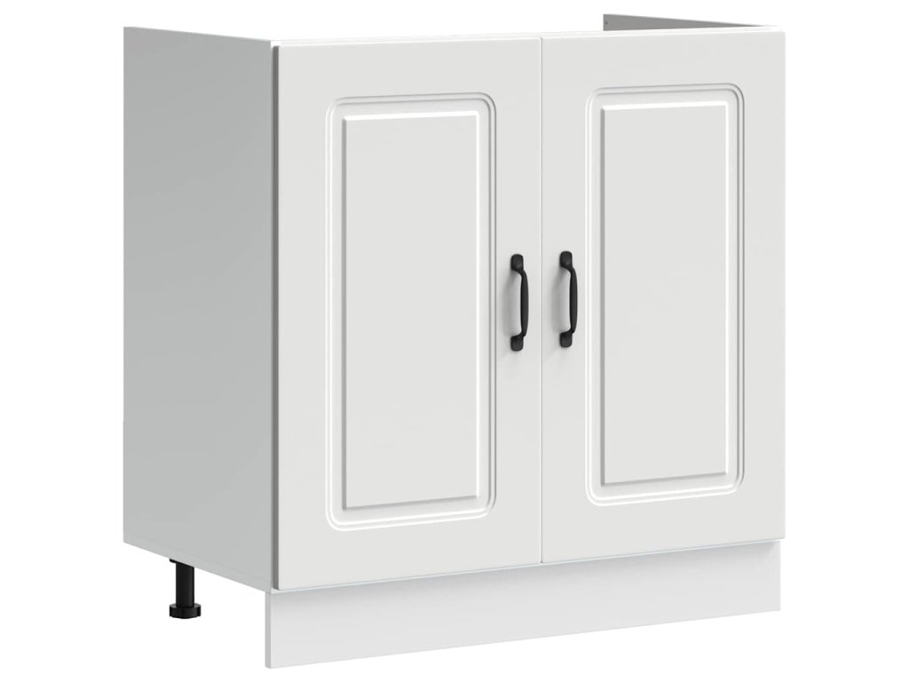 - Součásti: Skříňka má bezfalcové dveře, které zajišťují hladký chod a elegantní vzhled. Černé nohy zajišťují stabilitu a obloukové úchyty poskytnou pohodlné uchopení a kontrast.