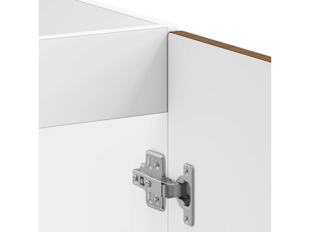 - Součásti: Skříňka má bezfalcové dveře, které zajišťují hladký chod a elegantní vzhled. Černé nohy zajišťují stabilitu a obloukové úchyty poskytnou pohodlné uchopení a kontrast.