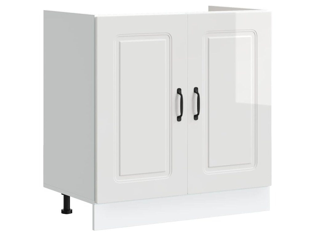 - Součásti: Skříňka má bezfalcové dveře, které zajišťují hladký chod a elegantní vzhled. Černé nohy zajišťují stabilitu a obloukové úchyty poskytnou pohodlné uchopení a kontrast.