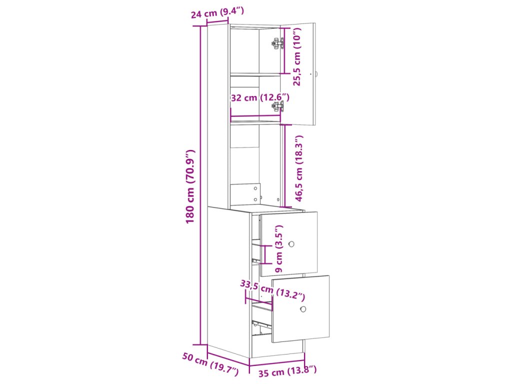 - Rozměry: 35 x 50 x 180 cm (D x Š x V)