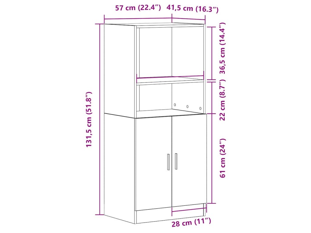 - Celkové rozměry: 57 x 41,5 x 131,5 cm (Š x H x V)
