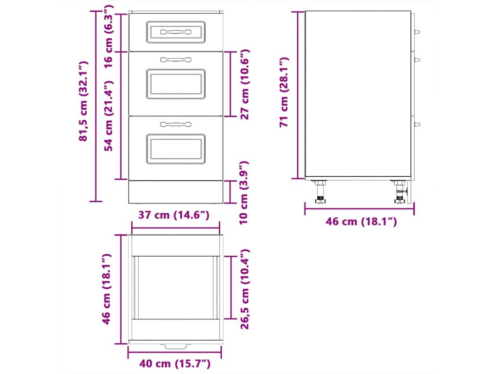 - Rozměry zásuvky (malá): 31,5 x 38,5 x 27 cm (Š x H x V)