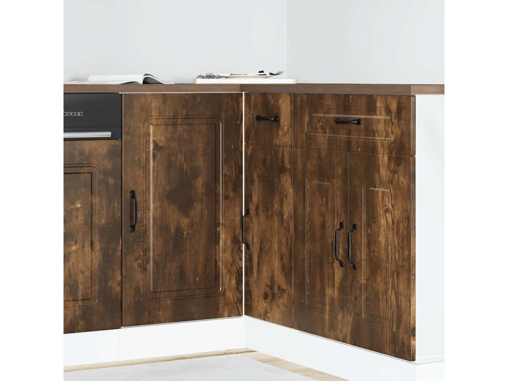 - Praktické dveře: Dvířka pomáhají udržovat čistý a uspořádaný prostor tím, že za nimi jsou schovány kuchyňské spotřebiče a nepořádek.