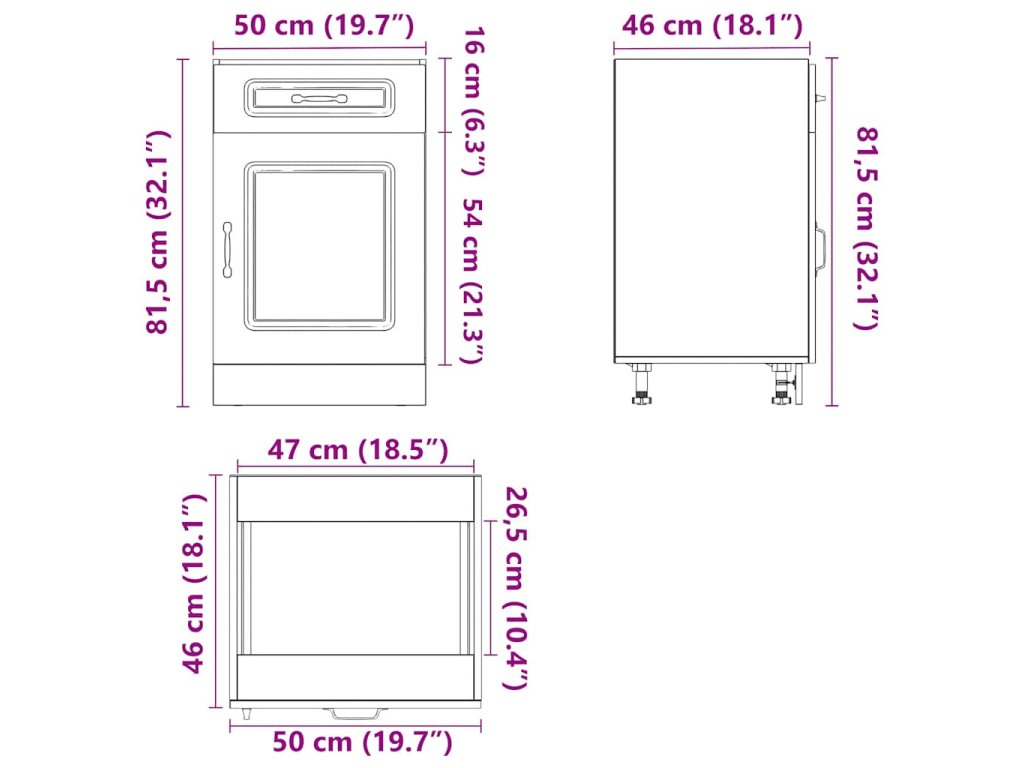 - Rozměry skříně: 50 x 46 x 54 cm (Š x H x V)