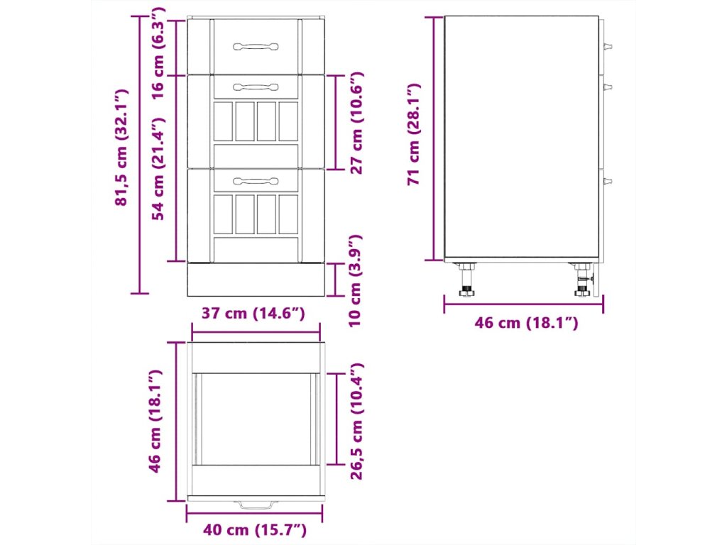 - Rozměry jednotlivých zásuvek: 40 x 38,5 x 16/27 cm (Š x H x V)
