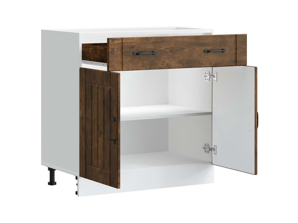- Praktické dveře: Dvířka pomáhají udržovat čistý a uspořádaný prostor tím, že za nimi jsou schovány kuchyňské spotřebiče a nepořádek.