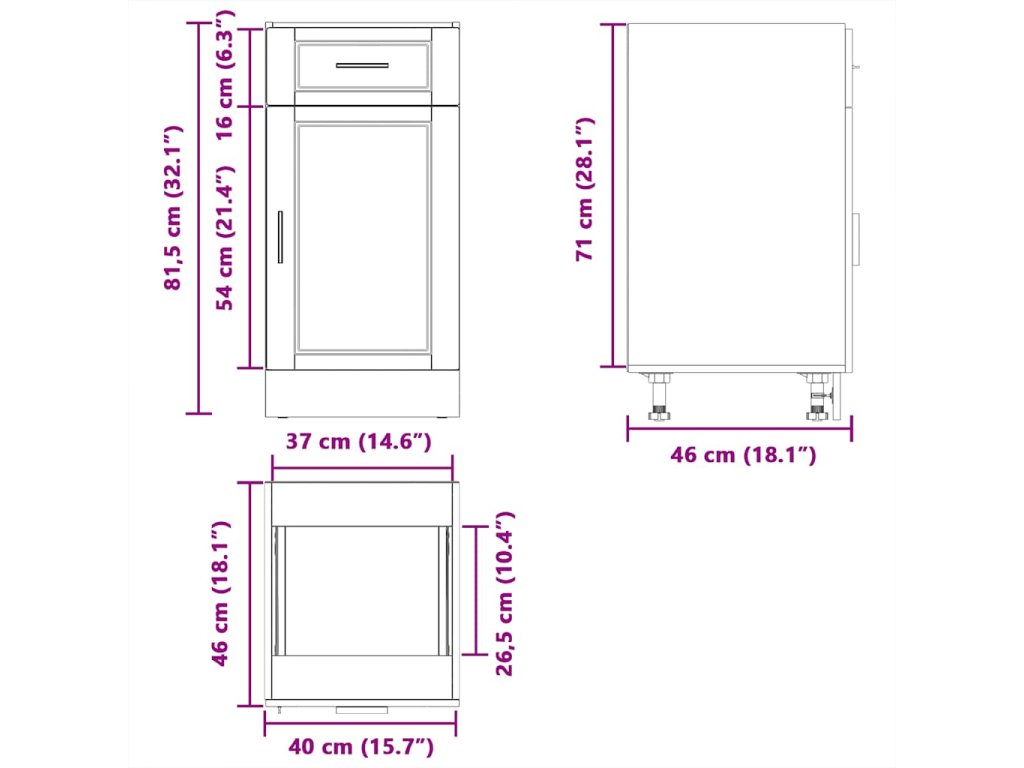 - Rozměry skříně: 40 x 46 x 54 cm (Š x H x V)