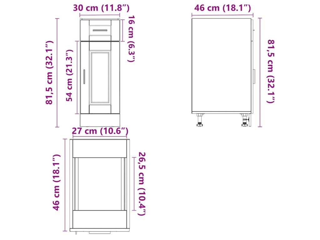 - Rozměry skříně: 30 x 46 x 54 cm (Š x H x V)