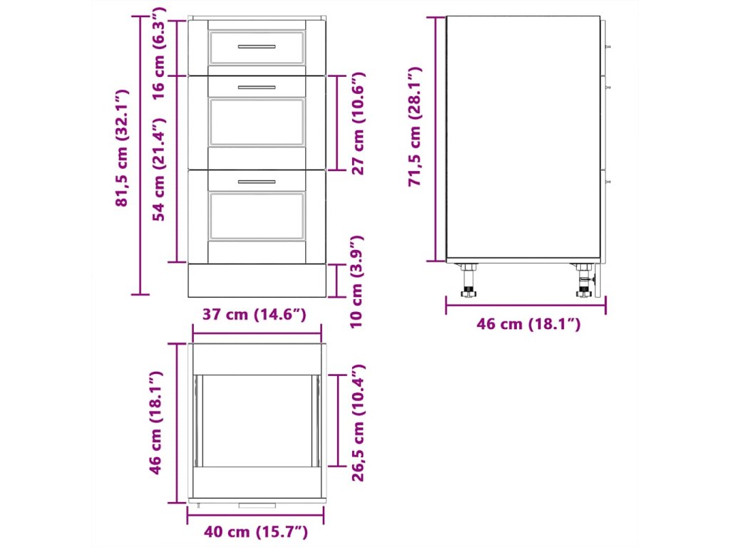 - Nastavitelné nohy: Nohy této skříňky lze výškově nastavit tak, aby vyhovovaly uspořádání vaší kuchyně.