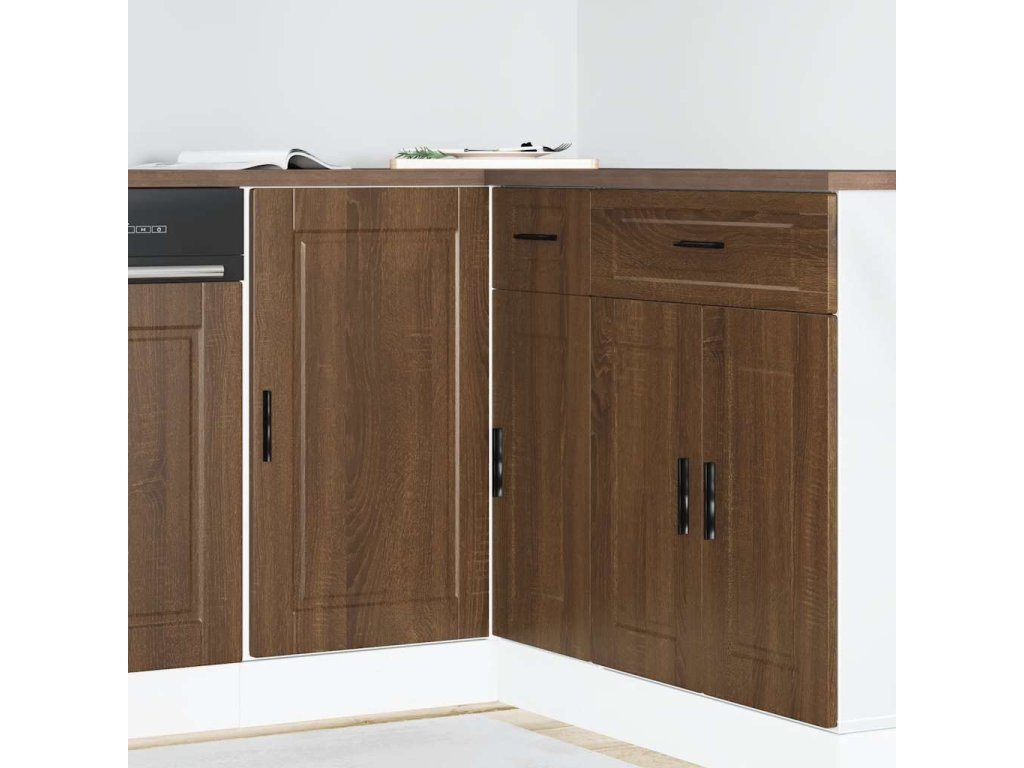 - Praktické dveře: Dvířka pomáhají udržovat čistý a uspořádaný prostor tím, že za nimi jsou schovány kuchyňské spotřebiče a nepořádek.
