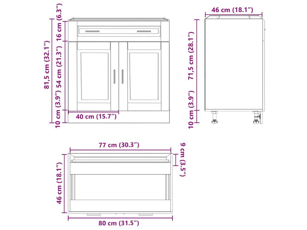 - Cabinet dimensions: 77 x 46 x 54 cm (Š x H x V)