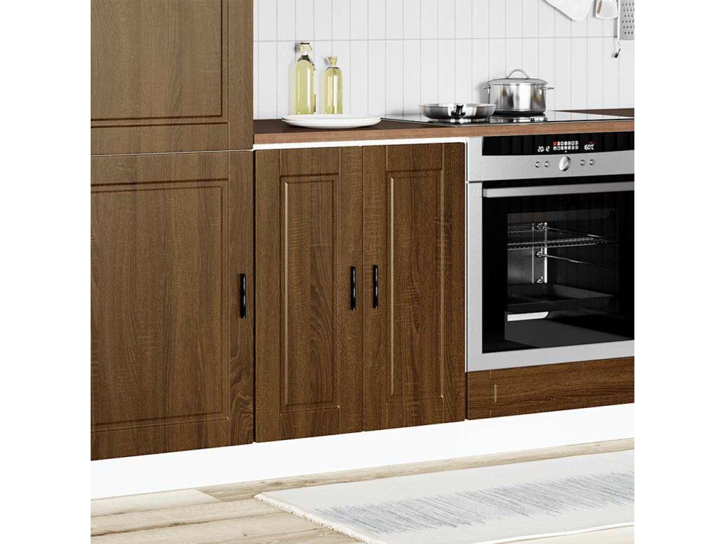 - Praktické dveře: Dvířka pomáhají udržovat čistý a uspořádaný prostor tím, že za nimi jsou schovány kuchyňské spotřebiče a nepořádek.