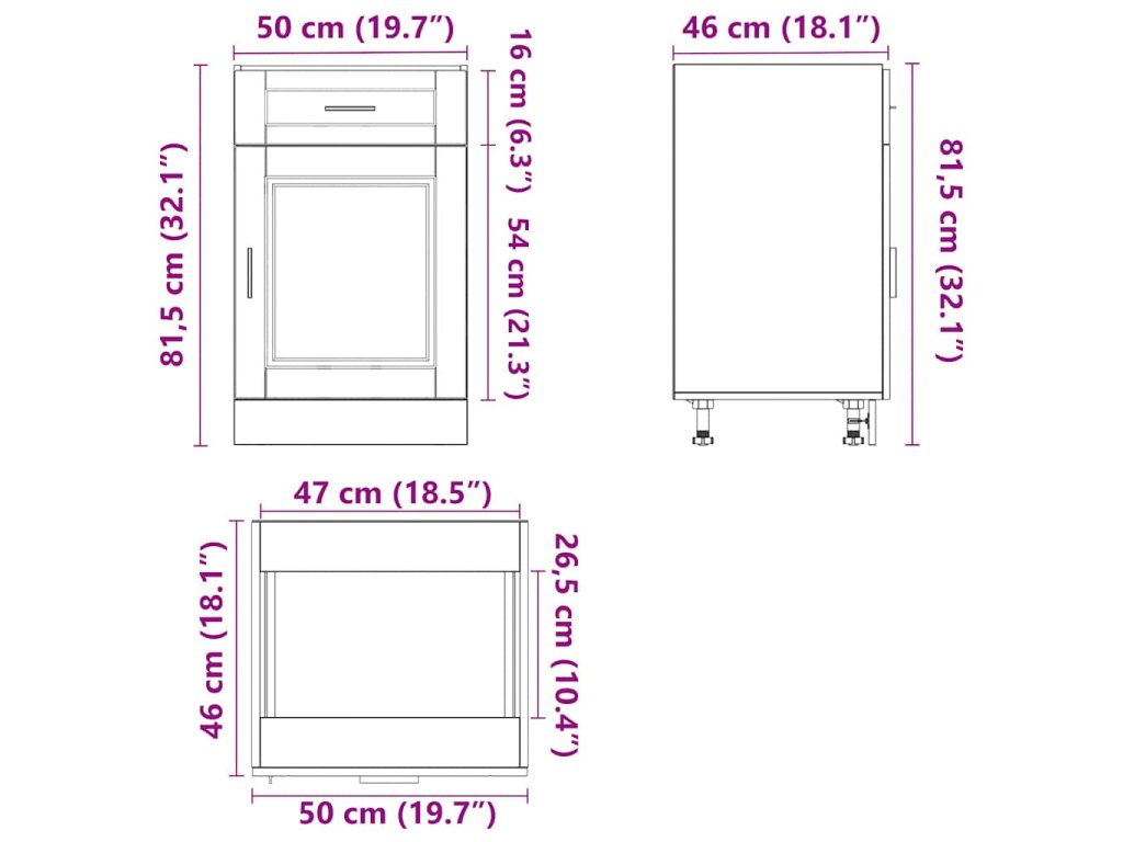- Nastavitelné nožičky: Nožky této skříňky lze výškově nastavit tak, aby vyhovovaly uspořádání vaší kuchyně.