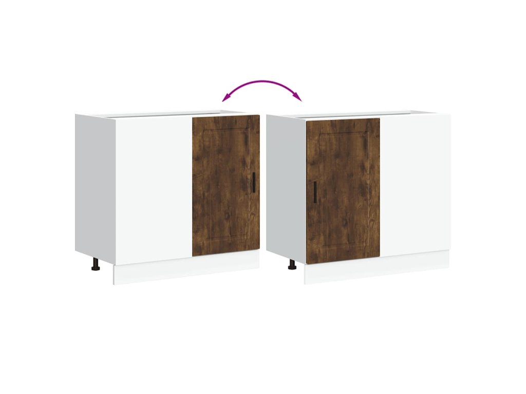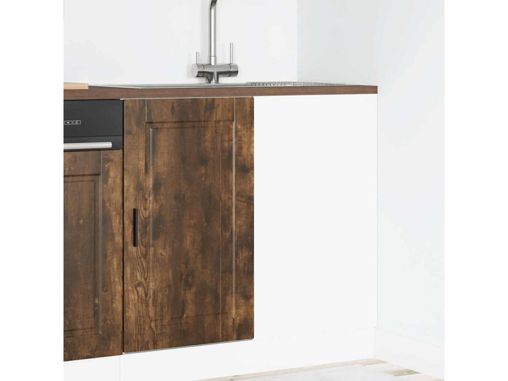 - Praktické dveře: Dvířka pomáhají udržovat čistý a uspořádaný prostor tím, že za nimi jsou schovány kuchyňské spotřebiče a nepořádek.