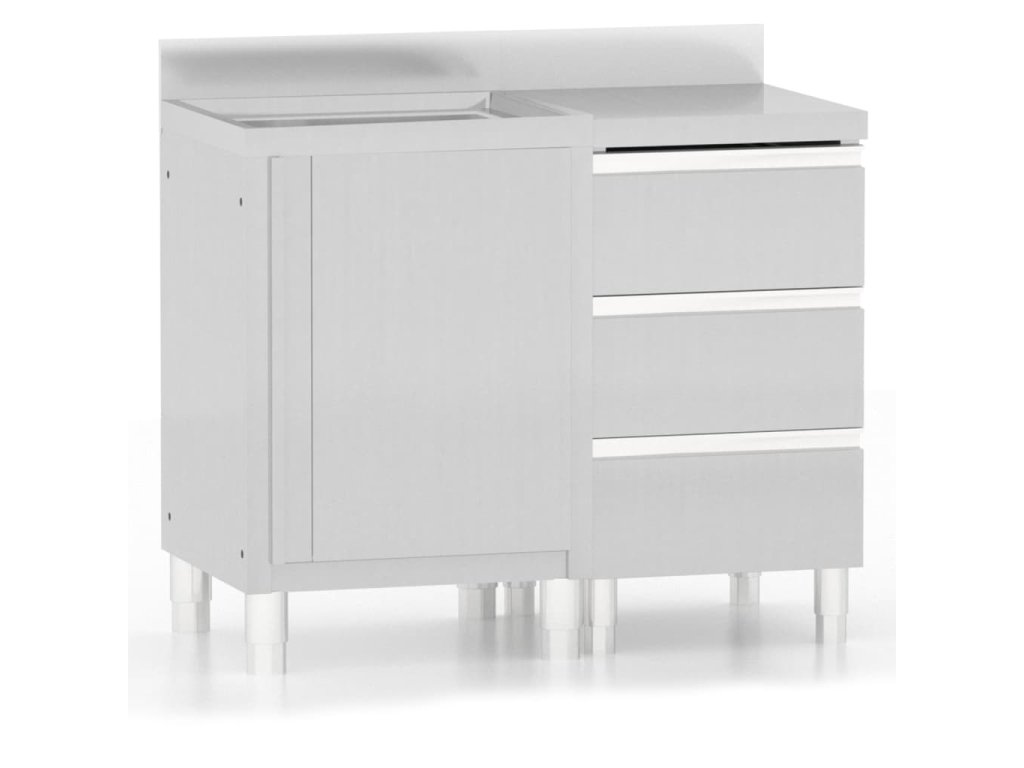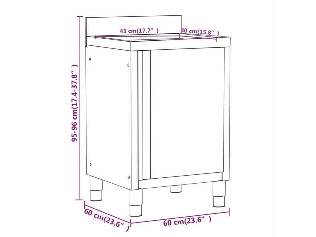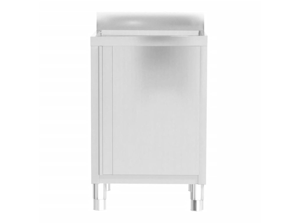 Tato úložní skříňka je vyrobená z kvalitní nerezové oceli a je robustní, antikorozní a snadno se čistí. Skříňka poskytuje dostatek úložného prostoru pro úklidové vybavení a příslušenství. Nastavitelné nožičky umožňují vyrovnat skříňku i na nerovné ploše. Součástí skříňky je 10 cm vysoký zadní lem a otvor na vodní trubku.