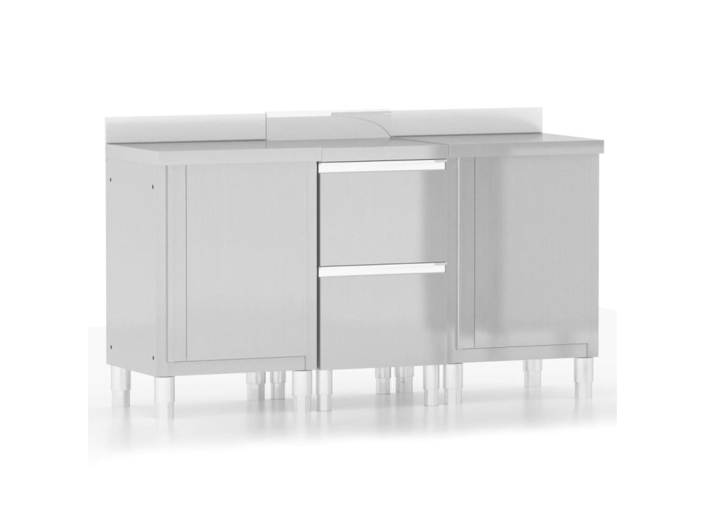 V našem obchodě můžete nalézt gastro dřezovou skříňku, skříňku s odkapávačem a skříňku s pracovním stolem. Můžete je navzájem propojit, aby vyhovovaly vašim konkrétním potřebám. Montážní příslušenství je součástí balení.