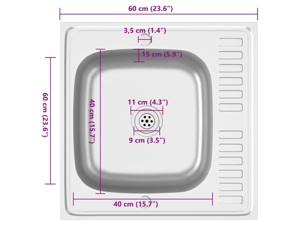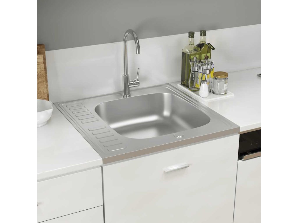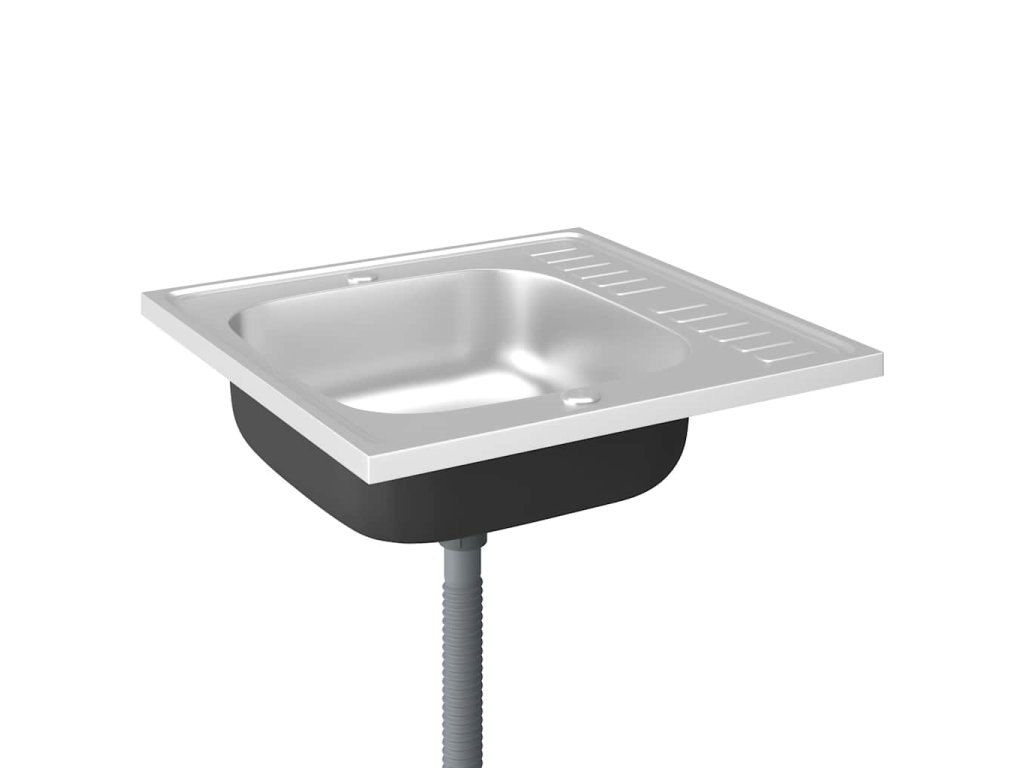 Dřez je vyroben z nerezové oceli, takže výborně vzdoruje teplu, poškrábání a nárazům a také se snadno čistí. Dřez s extra silnými bočními panely je určený pro montáž shora na skříňku. Praktický odkapávač slouží k odkládání umytého nádobí. Je vybaven odtokovým potrubím a otvory na vodovodní baterii na obou stranách, takže se může umístit na jakoukoli stranu.Jelikož je dřez plně oboustranný, lze jej umístit na levou, nebo na pravou stranu.