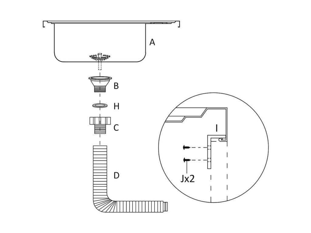 - Skříňka a odtokové sítko nejsou součástí dodávky.