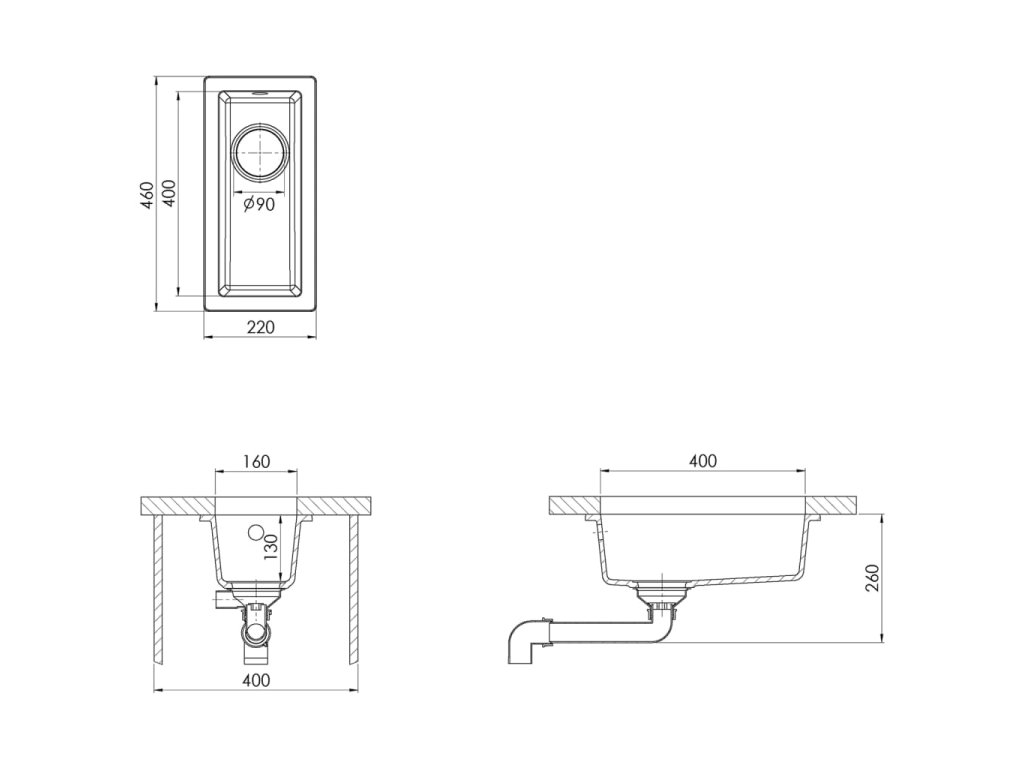 - Rozměry dřezu: 160 x 400 x 130 mm (Š x H x V)