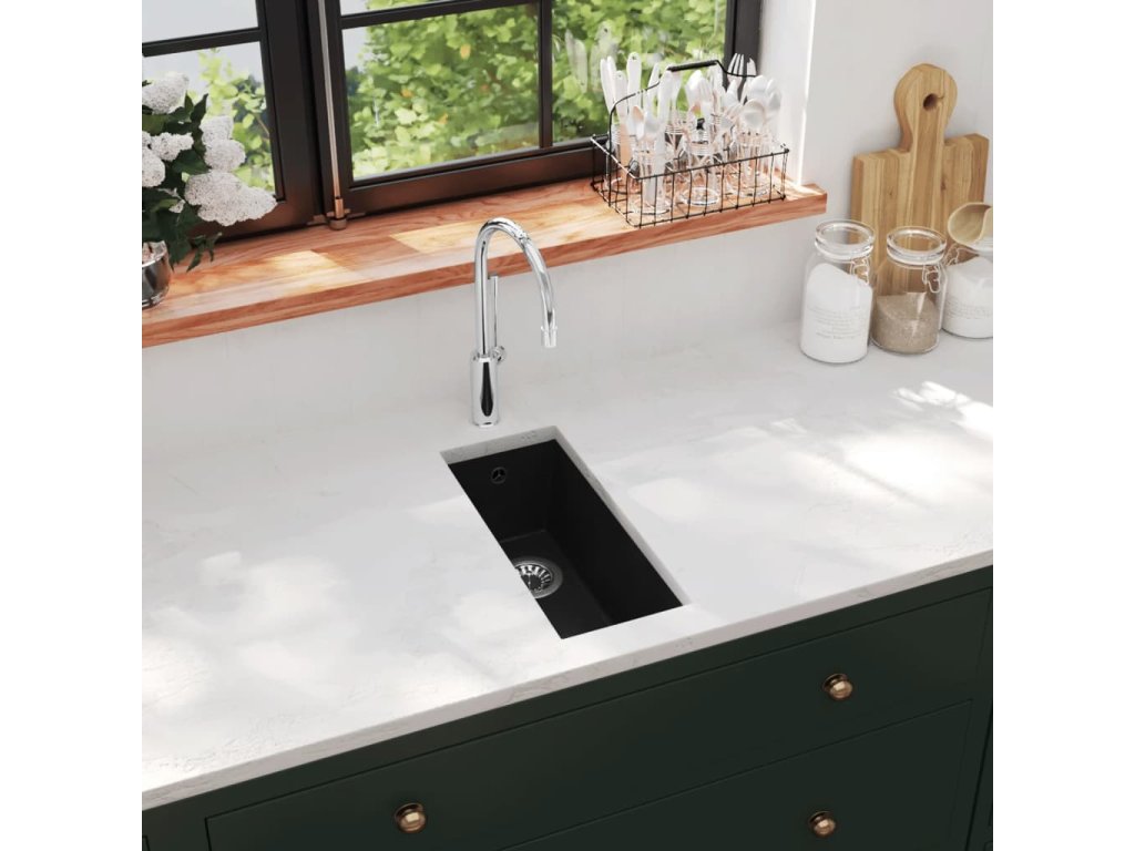Tento žulový kuchyňský dřez je skvělým nadčasovým doplňkem do vaší kuchyně. Tvoří ho jedno extrémně hluboké umyvadlo s elegantním designem.