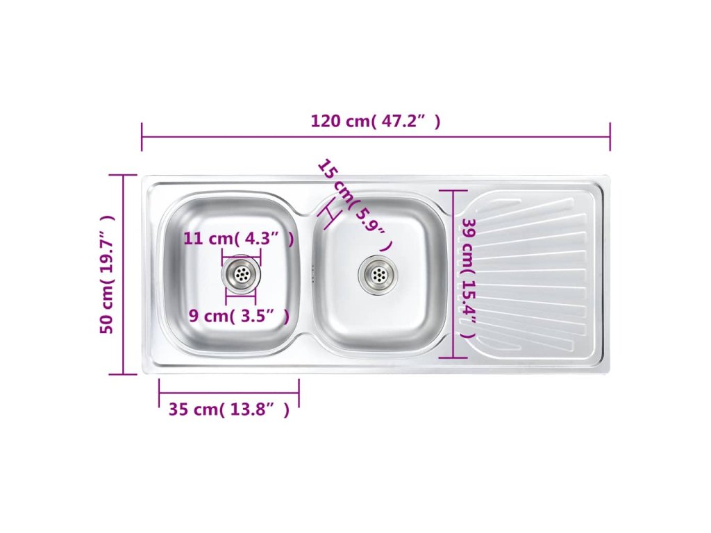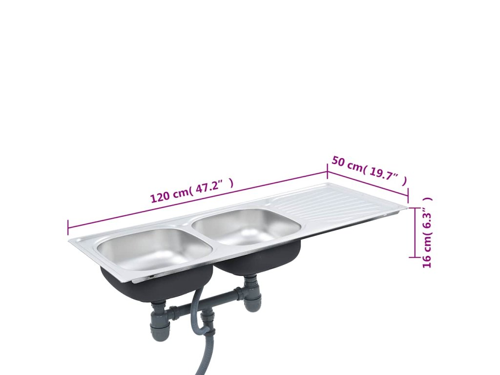 Kuchyňský dřez z kvalitní nerezové oceli je odolný proti poškrábání a nárazům a má velmi dlouhou životnost. Výborně také odpuzuje špínu a je odolný vůči skvrnám, takže se snadno čistí. Navíc má prostorově úsporný design, který vám umožní lépe využít pracovní prostor vaší kuchyňské linky. Extra hluboký dřez je dostatečně velký i pro velké nádobí a hrnce. Dvojitý dřez vám také nabízí zcela oddělený prostor pro různé potřeby. Součástí balení je také sítko do odpadu a sifon. Odkapávač vám přijde vhod nejen při mytí nádobí, ale poslouží také jako extra místo pro krájení zeleniny. Obdélníkový dřez je možné instalovat s odkapávací plochou na levé nebo pravé straně. Zásilka také obsahuje sítko do odpadu a sifon.