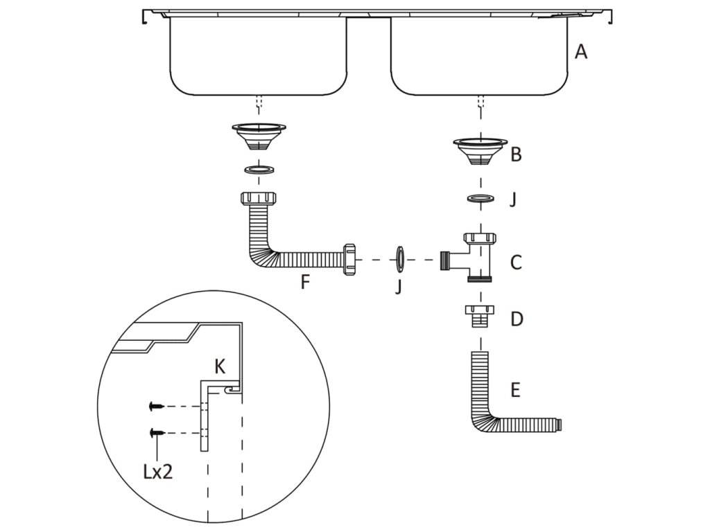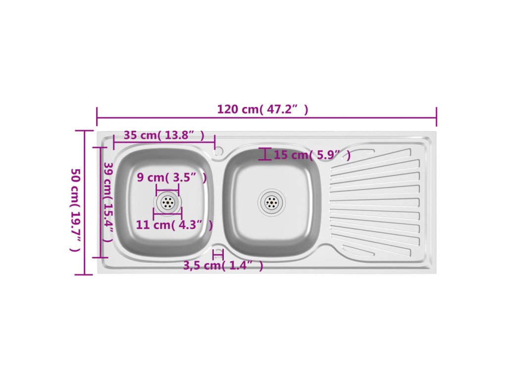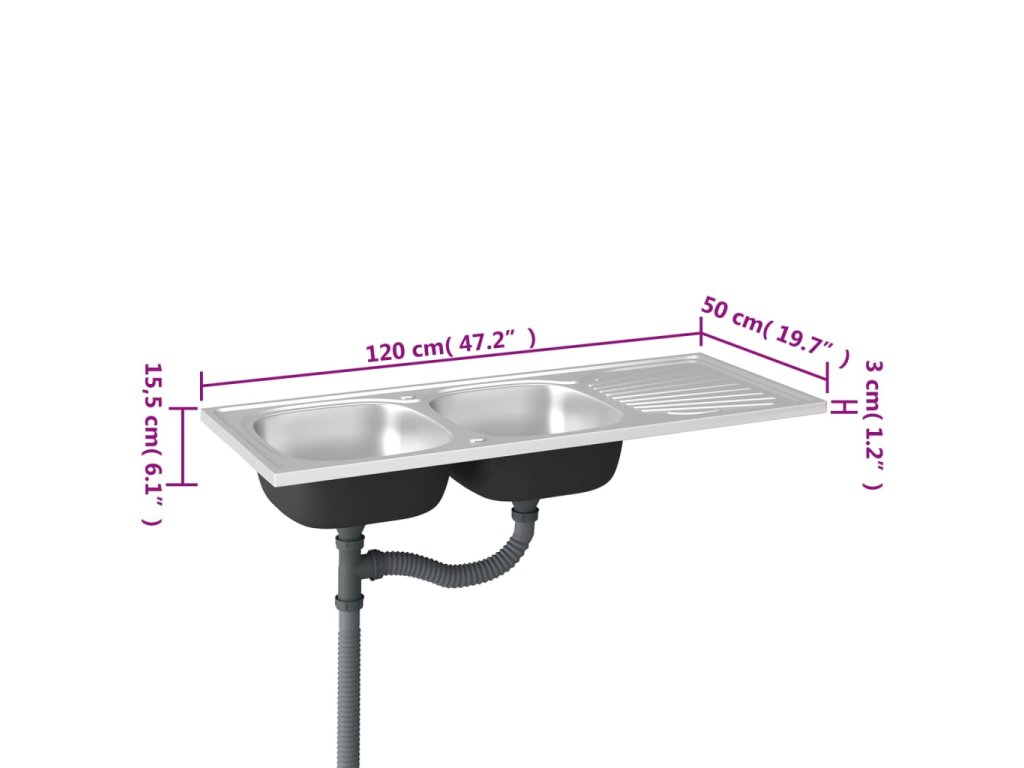 Dřez je vyroben z nerezové oceli, takže výborně vzdoruje teplu, poškrábání a nárazům a také se snadno čistí. Dřez s extra silnými bočními panely je určený pro montáž shora na skříňku. Praktický odkapávač slouží k odkládání umytého nádobí. Je vybaven odtokovým potrubím a otvory na vodovodní baterii na obou stranách, takže se může umístit na jakoukoli stranu.Jelikož je dřez plně oboustranný, lze jej umístit na levou, nebo na pravou stranu.