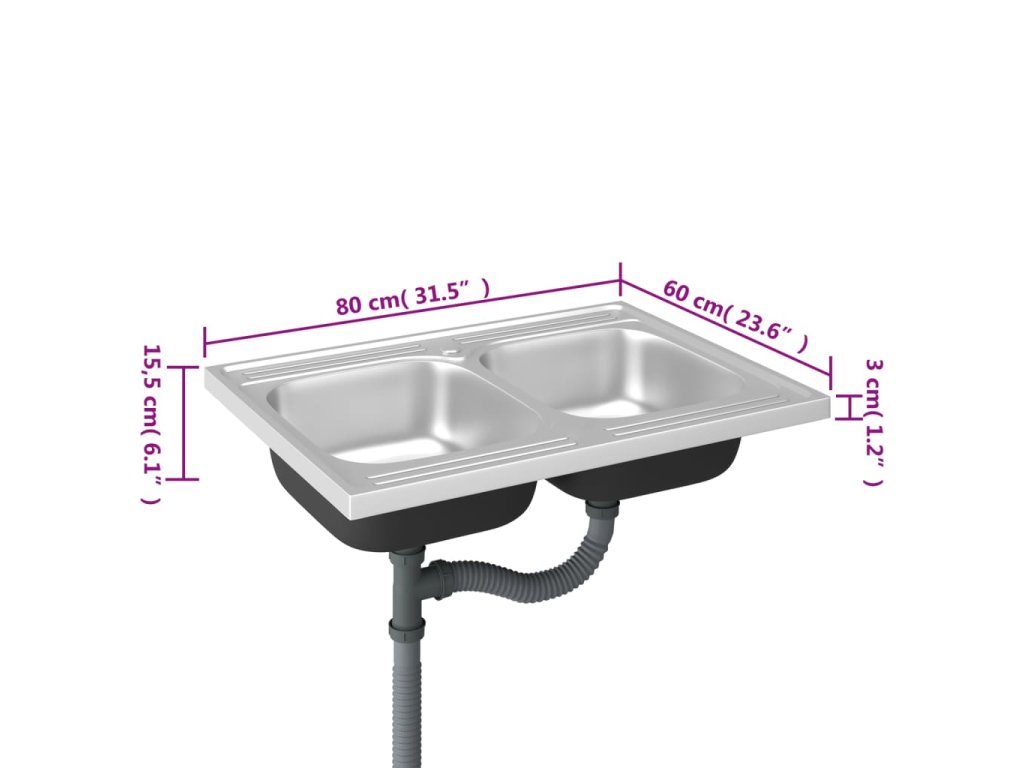 Tento kuchyňský dřez s dvojitým umyvadlem a odkapávací soupravou je ideálním doplňkem ke stávajícímu vybavení kuchyně.