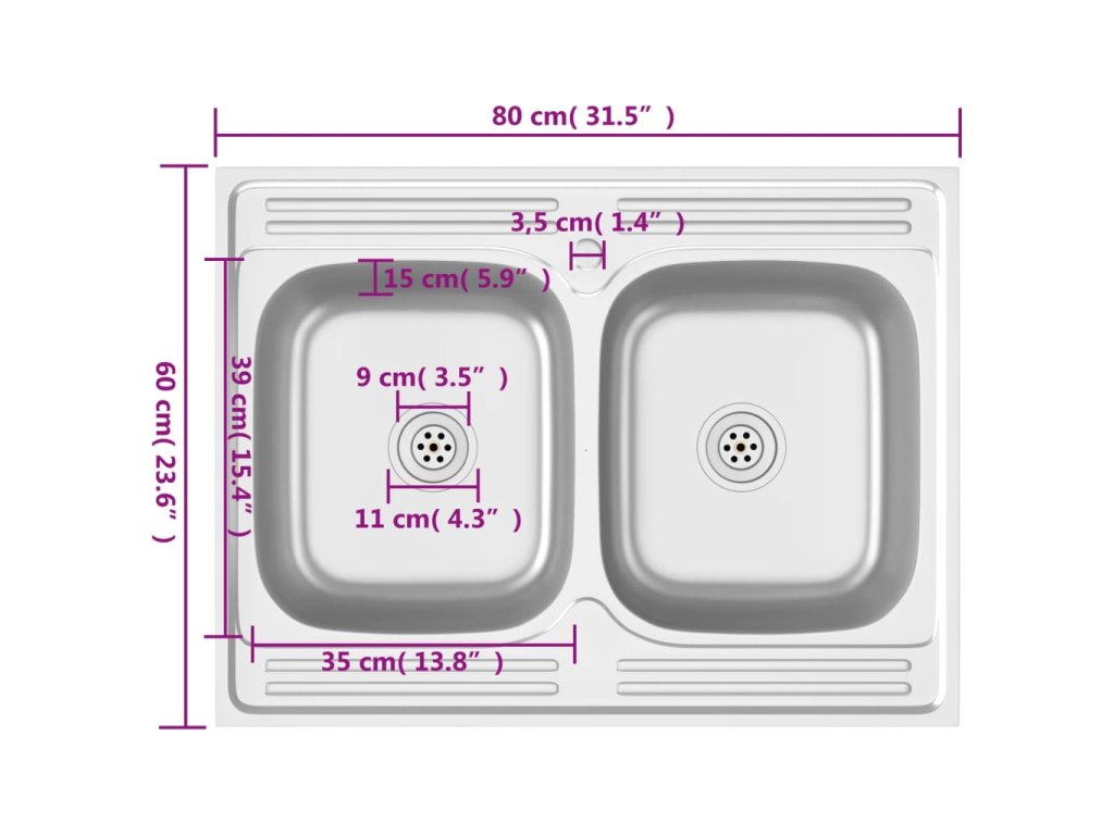 - Rozměry dřezu (každý): 390 x 350 mm (D x Š)