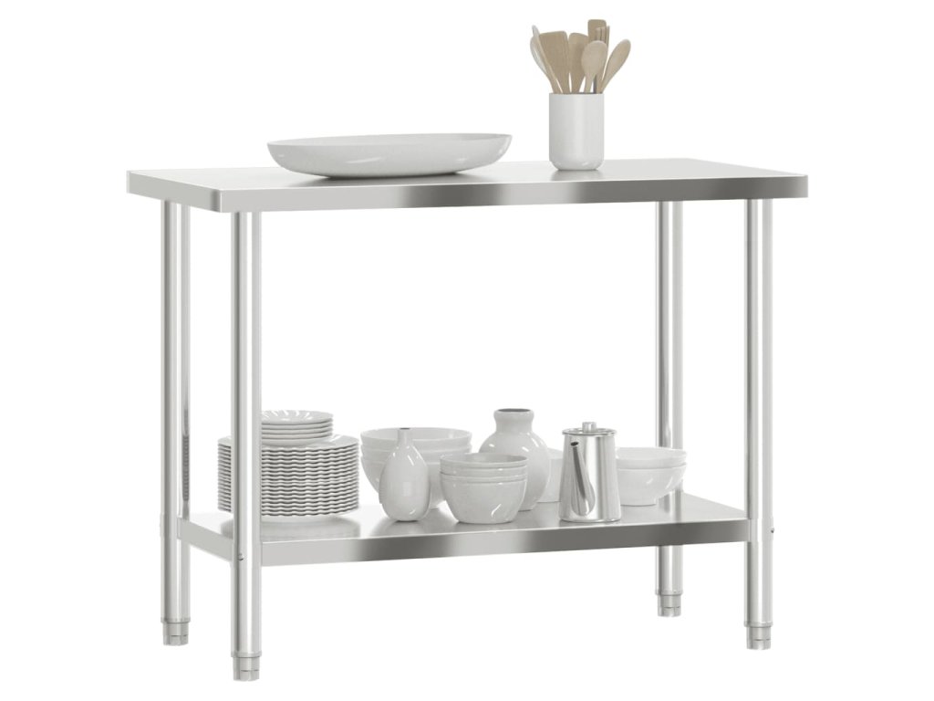 - Odolná a stabilní konstrukce: Pracovní stůl je vyroben z nerezové oceli, výborně tedy odolává korozi a rzi a zaručí vám dlouhá léta používání. Hladký povrch se snadno čistí a udržuje, což zajišťuje hygienickou přípravu pokrmů.
